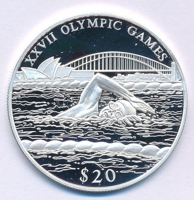 Libéria 2000. 20$ Ag "2000. évi Olimpiai Játékok Sydney - Úszás" kapszulában T:PP Liberia 2000. 20 Dollars Ag "Olympic Games 2000 Sydney - Swimming" in capsule C:PP