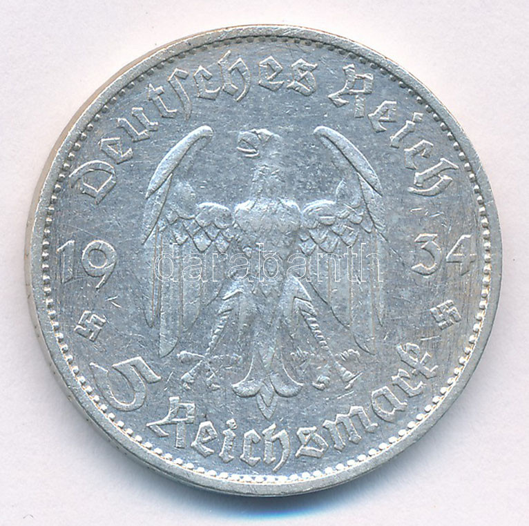 Német Harmadik Birodalom 1934D 5M Ag "Garnisonkirche" T:2,2- German Third Reich 1934D 5 Reichsmark Ag "Garnisonkirche" C:XF,VF Krause KM#83