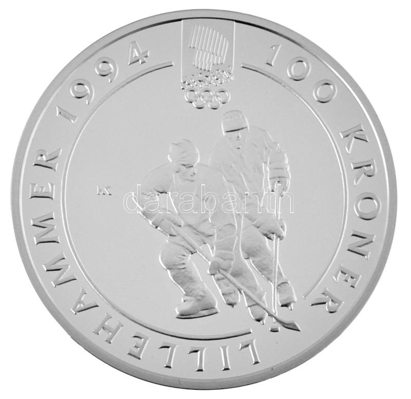 Norvégia 1992. 100K Ag "Lillehammer Téli Olimpia - Jéghoki" T:PP / Norway 1992. 100 Kroner Ag "Lillehammer Olympics - Hockey" T:PP Krause KM#441