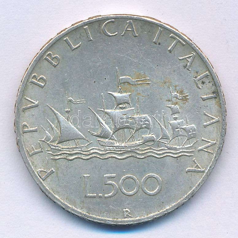 Olaszország 1964R 500L Ag "Kolumbusz hajói" T:XF Italy 1964R 500 Lire Ag "Columbus' Ships" C:XF Krause KM#98