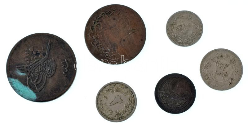Oszmán Birodalom 1859. (1255/21) 20p Cu + 1861. (1277) 10p Cu + 1902. (1293/27) 10p billon + 1914. (1293/6) 5p Ni + 1915. (1293/7) 10p Ni "el-Ghazi" + Egyiptom 1907. (1293/33) 2/10q Cu-Ni T:XF-F Ottoman Empire 1859. (1255/21) 20 Para Cu + 1861. (1277) 10 Para Cu + 1902. (1293/27) 10 Para billon + 1914. (1293/6) 5 Para Ni + 1915. (1293/7) 10 Para Ni "el-Ghazi" + Egyiptom 1907. (1293/33) 2/10 Qirsh Cu-Ni C:XF-F