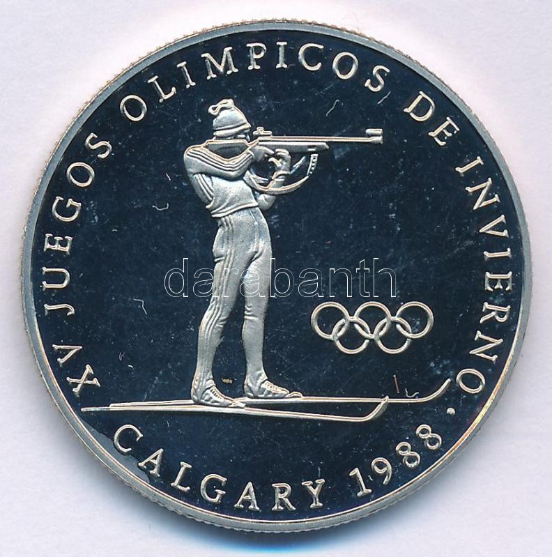 Panama 1988. 1B Cu-Ni "Téli Olimpia 1988 Calgary - Biatlon lövészet" forgalomba nem került fantázia emlékérme T:PP karc Panama 1988. 1 Balboa Cu-Ni "Winter Olympics 1988 Calgary - Biathlon skier shooting" non-circulating commemorative fantasy coin C:PP scratch Krause X#M3