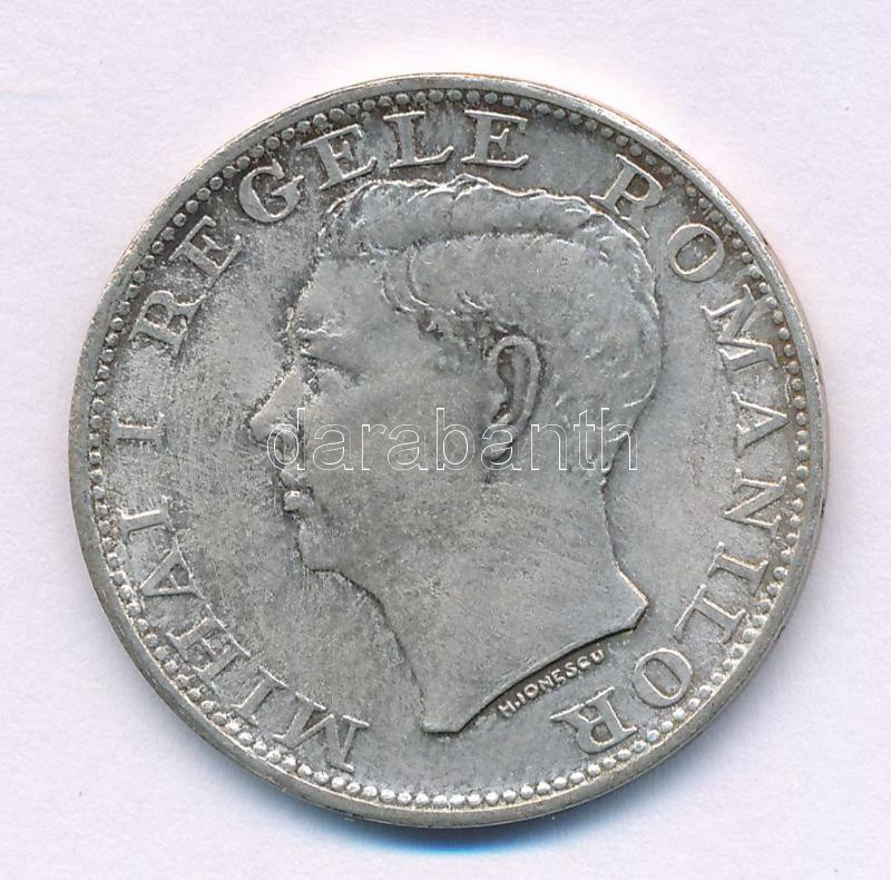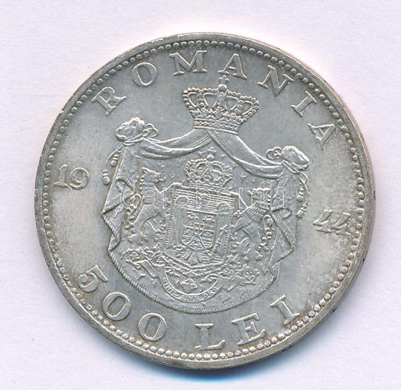 Románia 1944. 500L Ag "I. Mihály" T:XF kis patina, ph. Romania 1944. 500 Lei Ag "Mihai I" C:XF small patina, edge error Krause KM#65