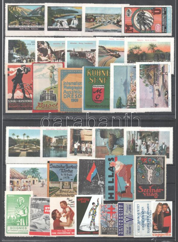 Beschreibung: 33 db vegyes témájú levélzáró, köztük városképek, fényképezés, bár, Bravo magazin stb.