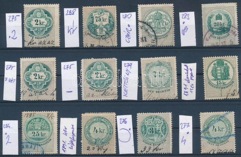 12 db okmánybélyeg fogazási és nyomási eltérésekkel https://www.darabanth.com/de/469-Fernauktion/469.0/Philatelie-und-Postgeschichte-Ungarn/Stempelmarken~500019/12-db-okmanybelyeg-fogazasi-es-nyomasi-elteresekkel~II3172646