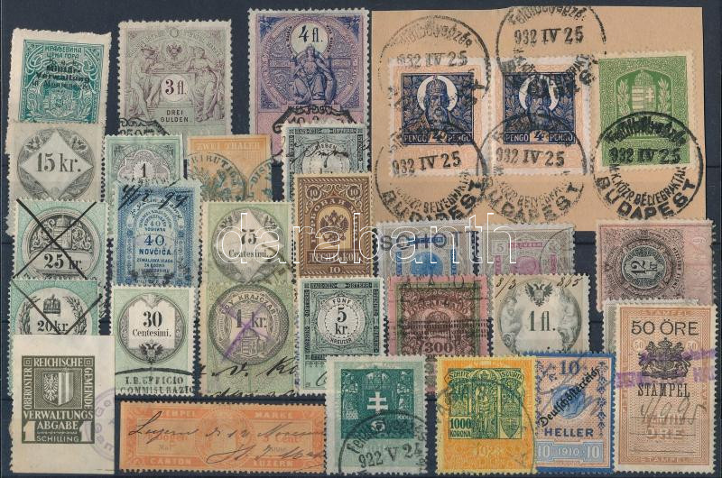 Beschreibung: 30 db régi magyar és külföldi okmánybélyeg