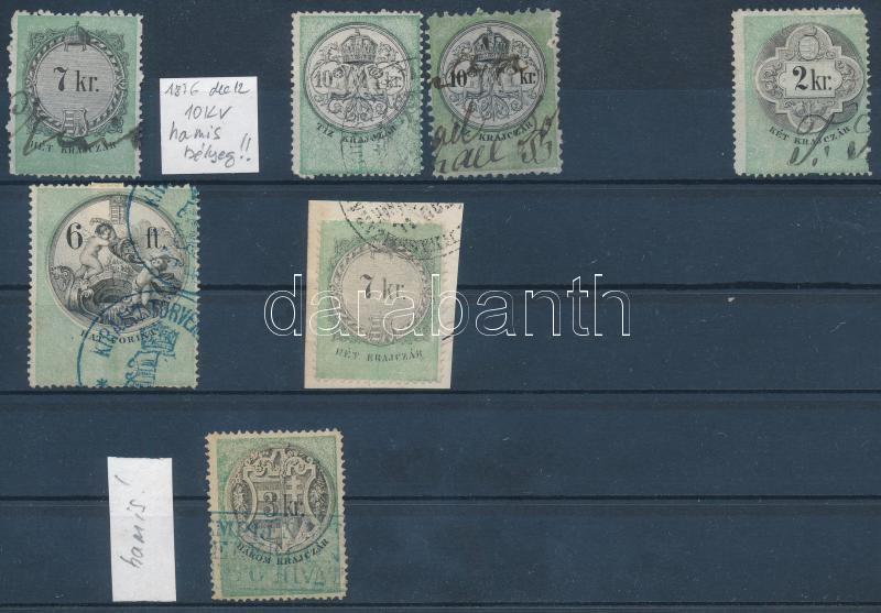 Beschreibung: 7 db régi okmánybélyeg, köztük érdekességek