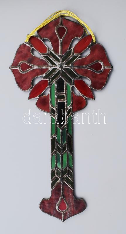 Beschreibung: Horváth Márton (1941-2013): Ólomüveg kereszt. Jelzés nélkül, 1-1 mozaik átrepedt, 40x20 cm. /// Proveniencia: a beadó a művésztől kapta ajándékba.
