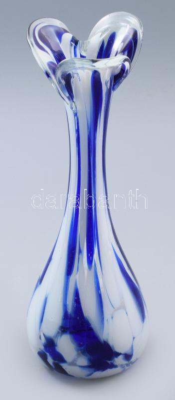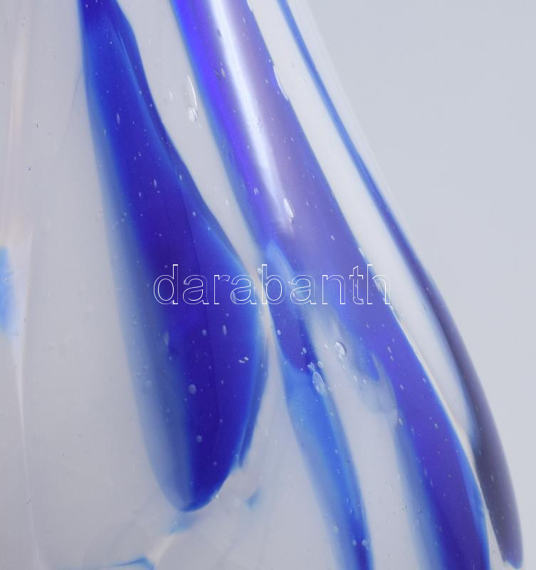 Kék-fehér üveg váza nagy méretű cseh, formába fújt,