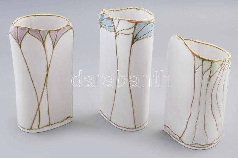 Beschreibung: Gonda Margit: 3 darab kerámia váza. Egyik repedéssel, jelzett, m: 18-19 cm