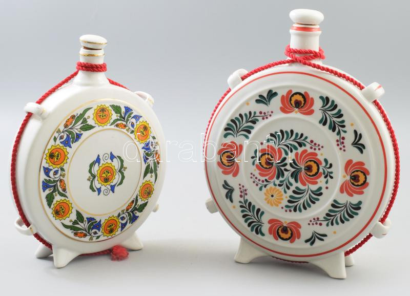 Beschreibung: 2 db népies Hollóházi porcelán kulacs. Kézzel festett, jelzett, hibátlan 20x23 cm