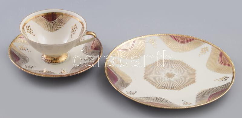 Beschreibung: Bavaria vintage reggeliző szett, gazdagon aranyozott mintával, jelzett, d: 20 cm