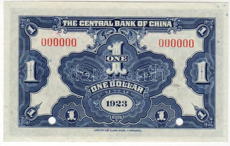 Beschreibung: Kína/Central Bank 1923. 1$ Minta "00" T:I