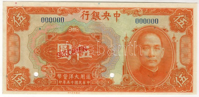 Kína/Central Bank 1926. 5$ Minta "00" T:I https://www.darabanth.com/de/47-Fernauktion/47.0/Numismatik/~171/KinaCentral-Bank-1926-5USD-Minta-00-TI~II94491