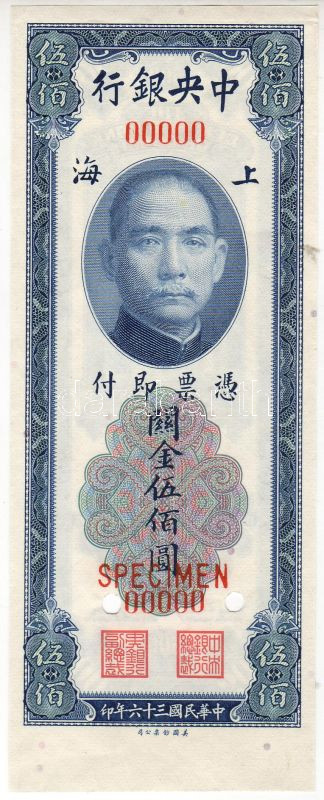 Kína/Central Bank 1947. 500Y Minta "00" T:I https://www.darabanth.com/de/47-Fernauktion/47.0/Numismatik/~171/KinaCentral-Bank-1947-500Y-Minta-00-TI~II94488