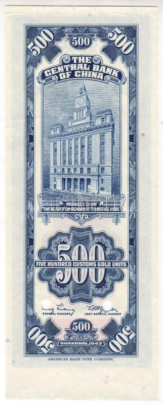 Beschreibung: Kína/Central Bank 1947. 500Y Minta "00" T:I