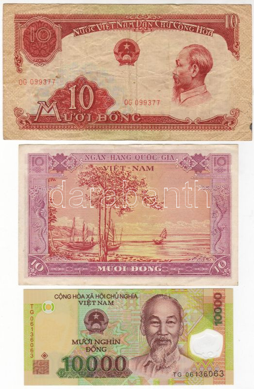 Vietnam 3 db klf bankjegy T:I (1x),II (1x) https://www.darabanth.com/de/47-Fernauktion/47.0/Numismatik/~171/Vietnam-3-db-klf-bankjegy-TI-1x-II-1x~II94483