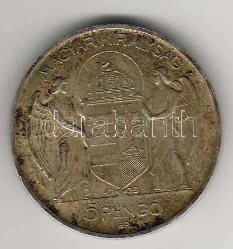 1939. 5P Ag "Horthy - balra" T:3 https://www.darabanth.com/de/47-Fernauktion/47.0/Numismatik/~184/1939-5P-Ag-Horthy--balra-T3~II94711