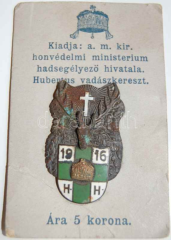 1916. "Hubertus vadászkereszt" eredeti árusítólapon, zománcozott jelvé... https://www.darabanth.com/de/47-Fernauktion/47.0/Numismatik/~197/1916-Hubertus-vadaszkereszt-eredeti-arusitolapon-zomancozott-jelveny-T2~II94702
