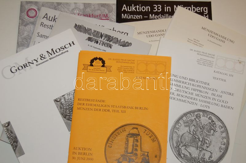 10 db nyugat-európai árverési katalógus az 1998-2004-es évekből https://www.darabanth.com/de/47-Fernauktion/47.0/Numismatik/~198/10-db-nyugat-europai-arveresi-katalogus-az-1998-2004-es-evekbol~II94765