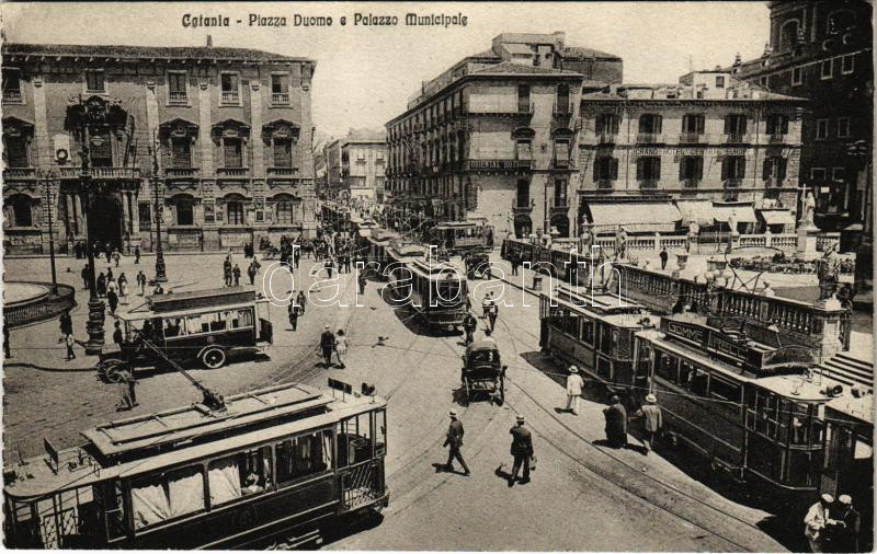 Catania, Piazza Duomo e Palazzo Municipale / square, municipal palace,... https://www.darabanth.com/de/470-Fernauktion/470.0/Ansichtskarten/Italien~2000094/Catania-Piazza-Duomo-e-Palazzo-Municipale-square-municipal-palace-trams-hotel-autobus-EK~II3181138
