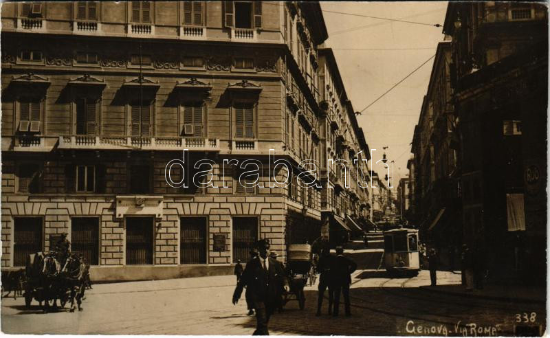 Beschreibung: Genova, Via Roma, Banca Commerciale Italiana, Guglielmo Oberdan / street, bank, tram, shop. photo (fl)