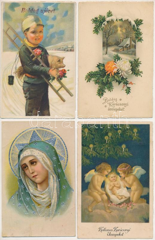 15 db RÉGI motívum képeslap vegyes minőségben: karácsonyi és újévi üdvözlőlapok / 15 pre-1945 motive postcards in mixed quality: Christmas and New Year greetings