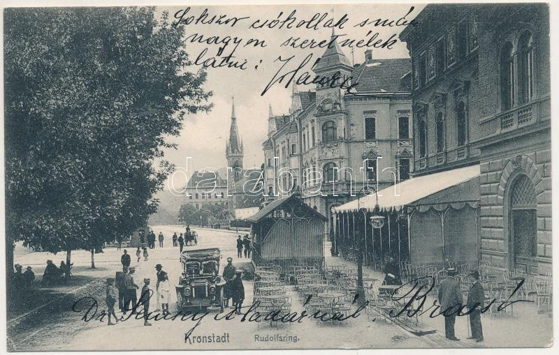 1908 Brassó, Kronstadt, Brasov; Rudolfsring / Rezső körút, automobil, ... https://www.darabanth.com/de/470-Fernauktion/470.0/Ansichtskarten/Siebenburgen~2000006/1908-Brasso-Kronstadt-Brasov-Rudolfsring-Rezso-korut-automobil-kavehaz-H-Zeidner-kiadasa~II3178025