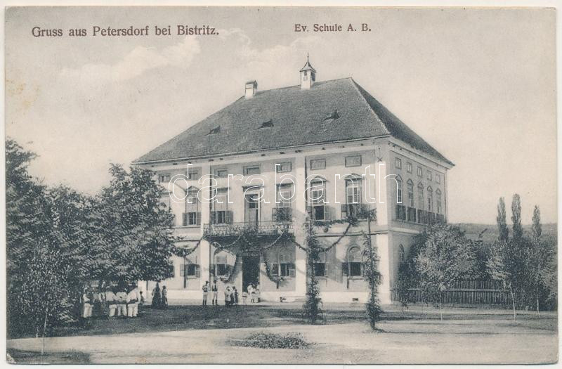 1911 Petres, Petersdorf (bei Bistritz), Petris; Ev. Schule / Evangélik... https://www.darabanth.com/de/470-Fernauktion/470.0/Ansichtskarten/Siebenburgen~2000006/1911-Petres-Petersdorf-bei-Bistritz-Petris-Ev-Schule-Evangelikus-iskola-Lutheran-school~II3179586