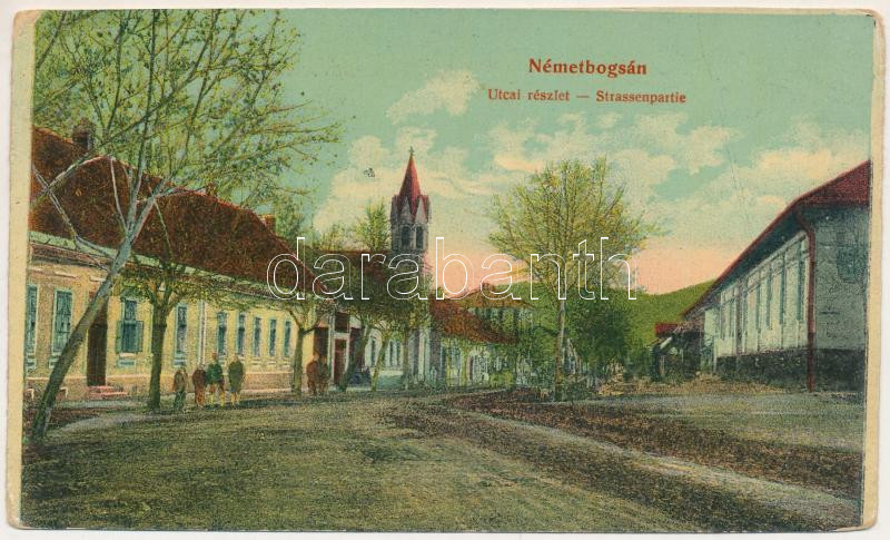 Beschreibung: Boksánbánya, Németbogsán, Deutsch-Bogsan, Bocsa Montana; utcai részlet. Rosner Adolf kiadása / Strassenpartie / street view (vágott / cut)