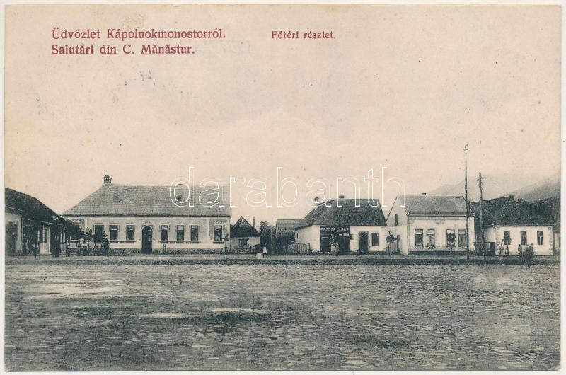 Beschreibung: Kápolnokmonostor, Copalnic-Manastur; Fő tér, Teodor és Bob üzlete. Sztupár Elek kiadása / main square, shops (fl)