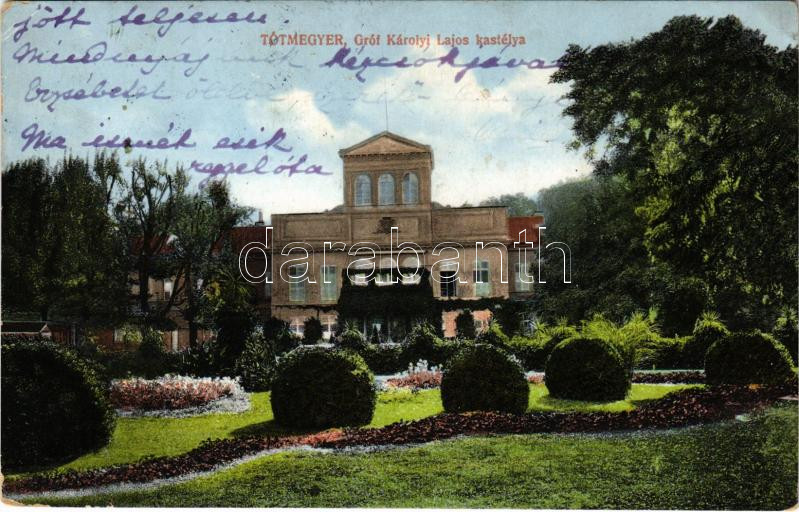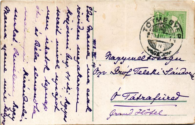 1913 Tótmegyer, Slovensky Meder, Palárikovo; Gróf Károlyi Lajos kastély. Özv. Gróf Teleki Sándornénak címzett levél Ótátrafüred Grand Hotelbe / castle (EK)