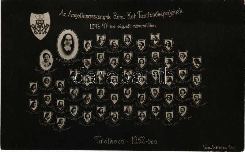 Budapest V. Az Angolkisasszonyok Római Kaolikus Tanítóképzőjének 1946-... https://www.darabanth.com/de/470-Fernauktion/470.0/Ansichtskarten/Ungarn~2000005/Budapest-V-Az-Angolkisasszonyok-Romai-Kaolikus-Tanitokepzojenek-1946-47-ben-vegzett-novendekeinek~II3177992