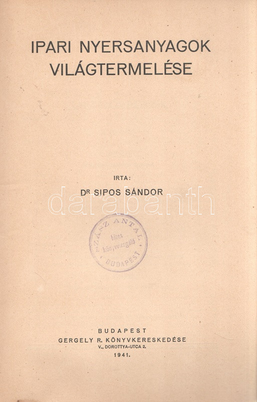 Budapest, 1941. Ge... https://www.darabanth.com/de/470-Fernauktion/470.0/Bucher/Bucher-Sozialwissenschaften~1000025/Sipos-Sandor-Ipari-nyersanyagok-vilagtermeleseBudapest-1941-Gergely-R-konyvkereskedese~II3183869