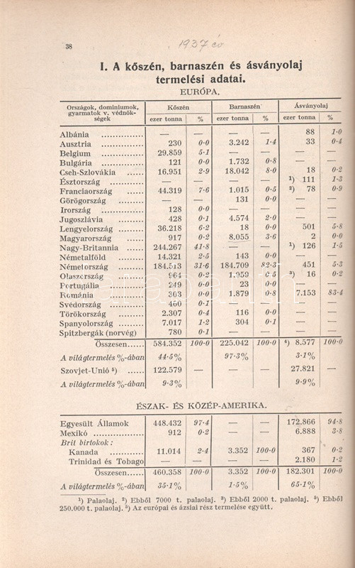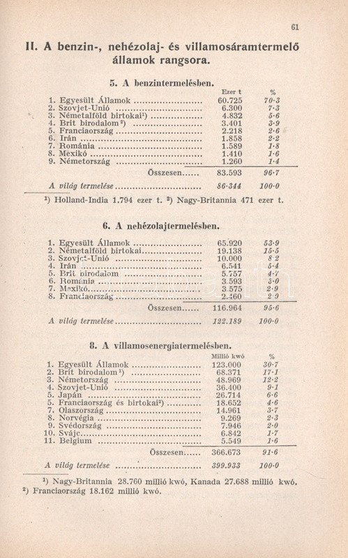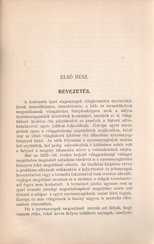 A nemzetgazdaságok nyersanyagtermelésének fölmérése a megkezdÅ‘dött világháború torzÃtó hatásai miatt az 1937. év adatain alapulnak. A szerzÅ‘ három évvel késÅ‘bb újabb műben megismételte kutatását. A cÃmlapon régi tulajdonosi bélyegzés.