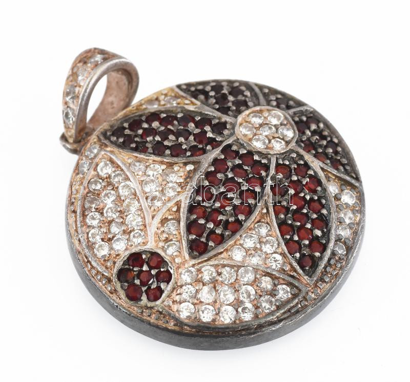 Beschreibung: Ezüst (Ag) medál strassz berakással, jelzés nélkül, d: 2,5 cm, bruttó: 7,2 g