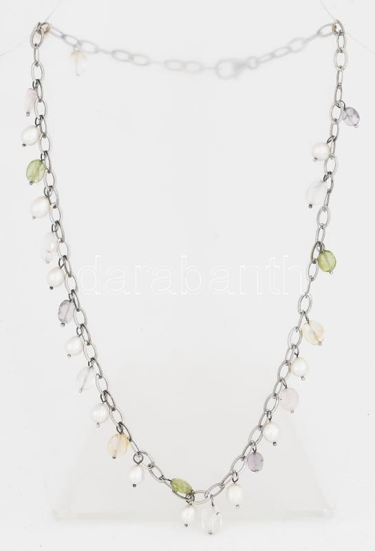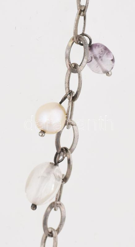 Beschreibung: Ezüst (Ag) nyaklánc gyöngyökkel, jelzett, h: 42 cm, bruttó: 16,3 g