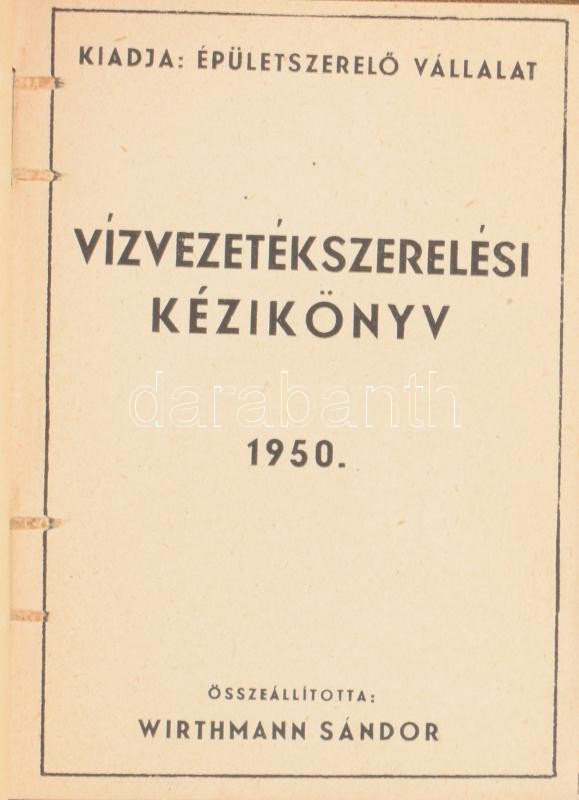 1950 Vízvezetékszerelési kézikönyv, összeáll.: Wirthmann Sándor, kiadj... https://www.darabanth.com/de/470-Fernauktion/470.0/Kunst-Dokumente-andere-Sammelgebiete/Drucksachen~1000014/1950-Vizvezetekszerelesi-kezikonyv-osszeall-Wirthmann-Sandor-kiadja-Epuletszerelo-Vallalat~II3184956