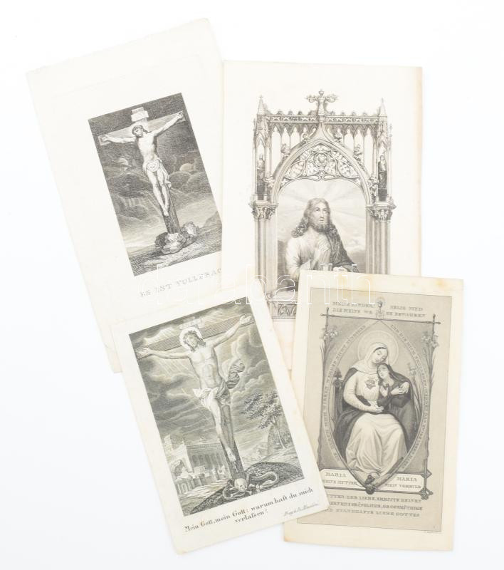 Beschreibung: Vegyes szentkép tétel, 4 db, közte fametszetek, és 1 acélmetszet, 16x10 cm és 12x8 cm közötti méretben