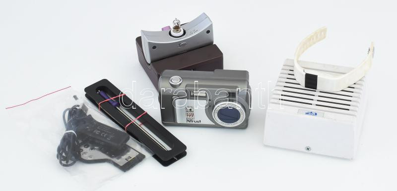 Beschreibung: Vegyes bolha tétel, közte digitális óra, hőmérő, távirányító, fényképezőgép, stb.
