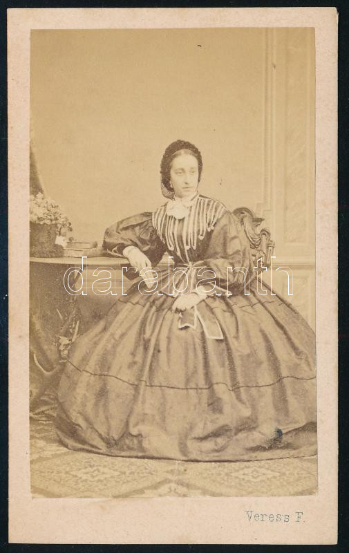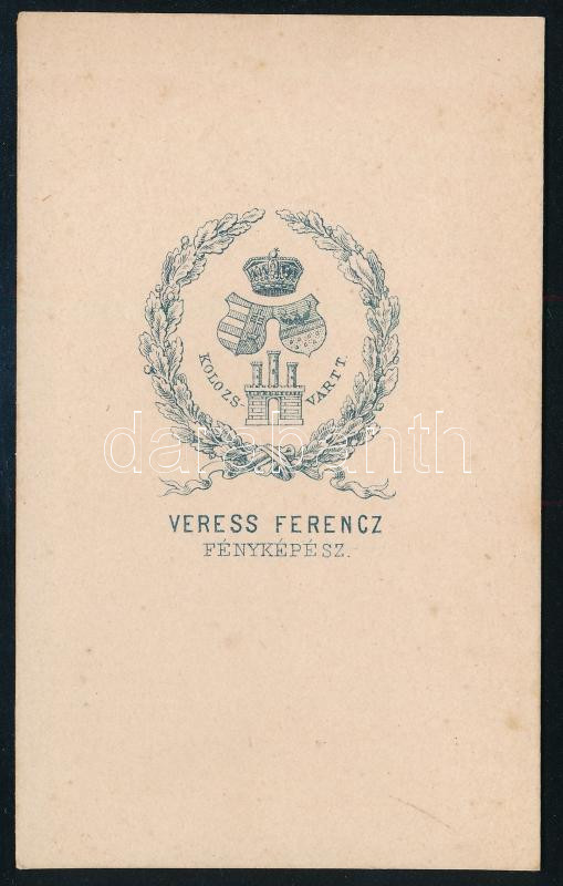 cca 1860 Fiatal, előkelő hölgy portréja, keményhátú fotó Veress Ferenc kolozsvári műterméből, magyar-erdélyi címeres hátlappal, jó állapotban, 10,5x6 cm