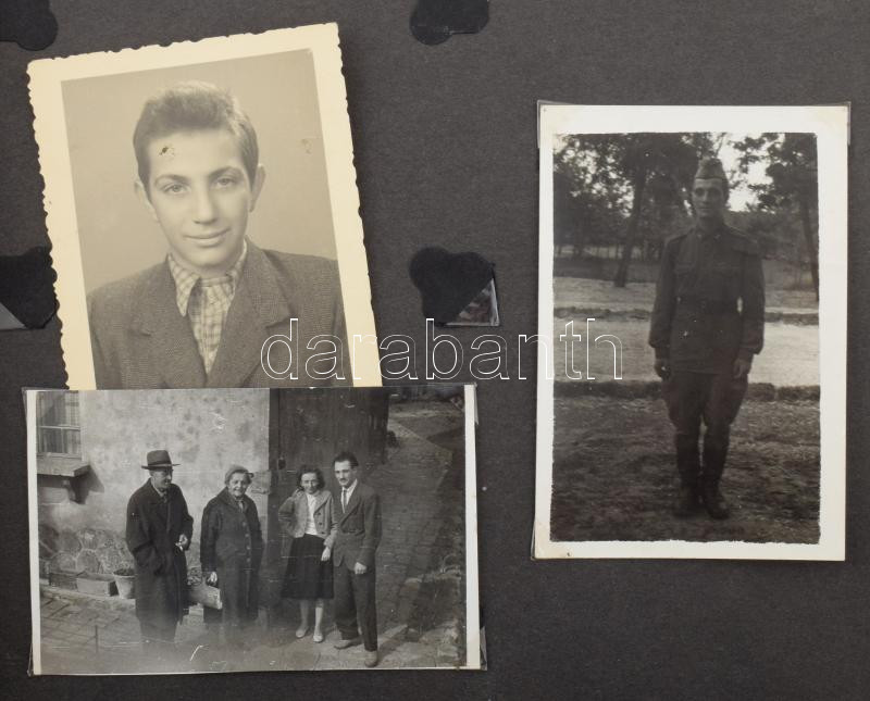 cca 1930-1960 Családi fotóalbum, kb. 50 db vegyes fotóval: esküvői fot... https://www.darabanth.com/de/470-Fernauktion/470.0/Kunst-Dokumente-andere-Sammelgebiete/Foto~500027/cca-1930-1960-Csaladi-fotoalbum-kb-50-db-vegyes-fotoval-eskuvoi-foto-katonafoto-gyerekek-~II3180729