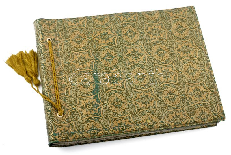 Beschreibung: cca 1930-1960 Családi fotóalbum, kb. 50 db vegyes fotóval: esküvői fotó, katonafotó, gyerekek, stb. Dekoratív, zsinórfűzéses albumban, 19x25 cm.