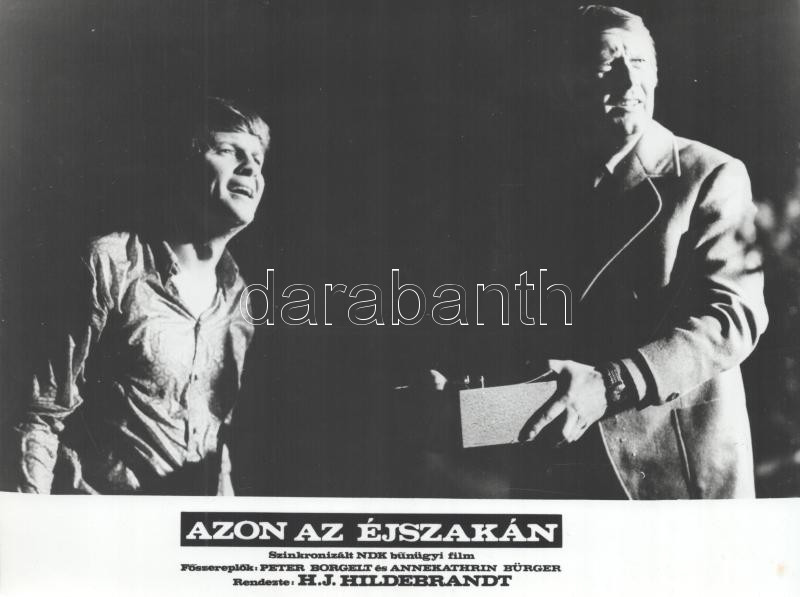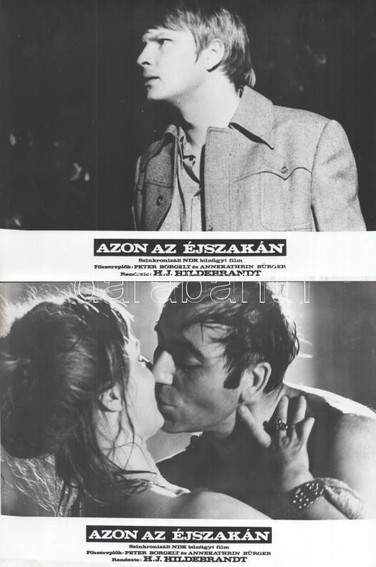 cca 1989 előtt készült ,,Azon az éjszakán" című NDK-beli film jelenetei és szereplői, 7 db vintage produkciós filmfotó (vitrinfotó, lobbyfotó) ezüst zselatinos fotópapíron, a használatból eredő (esetleges) kisebb hibákkal, 18x24 cm