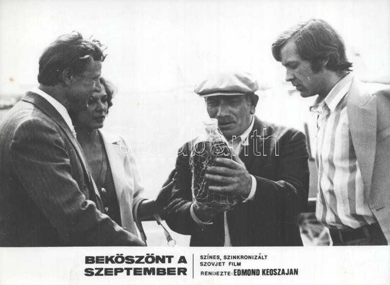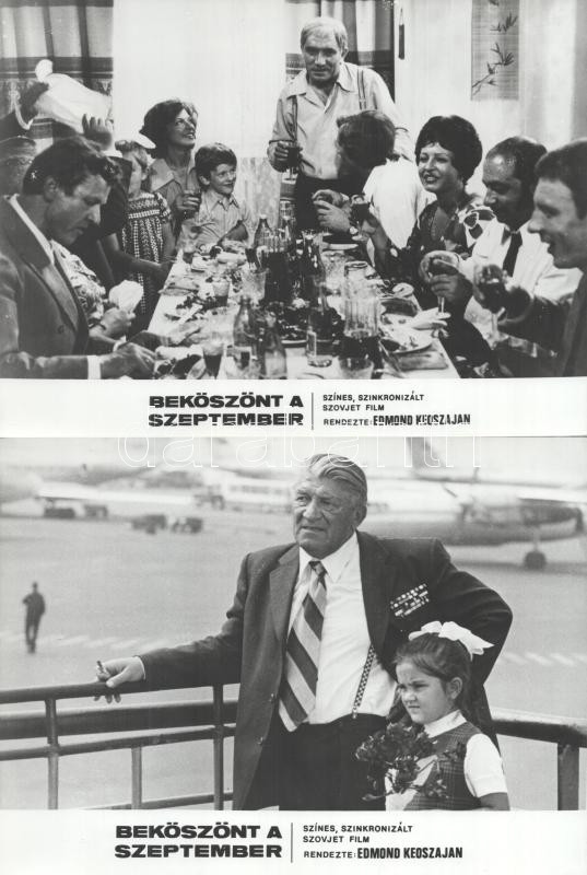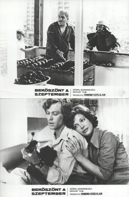 cca 1989 előtt készült ,,Beköszönt a szeptember" című szovjet film jelenetei és szereplői, 7 db vintage produkciós filmfotó (vitrinfotó, lobbyfotó) ezüst zselatinos fotópapíron, a használatból eredő (esetleges) kisebb hibákkal, 18x24 cm