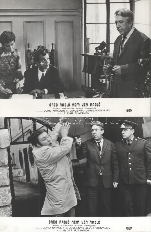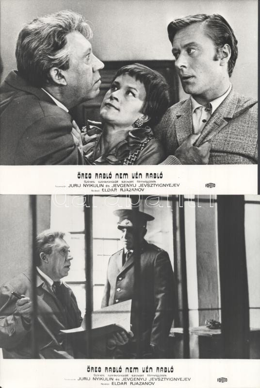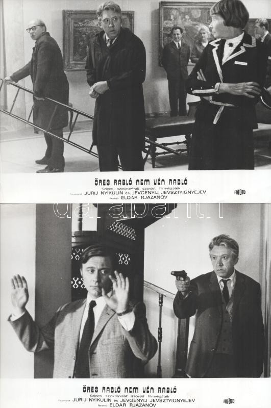 cca 1989 előtt készült ,,Öreg rabló nem vén rabló" című szovjet film jelenetei és szereplői, 9 db vintage produkciós filmfotó (vitrinfotó, lobbyfotó) ezüst zselatinos fotópapíron, a használatból eredő (esetleges) kisebb hibákkal, 18x24 cm