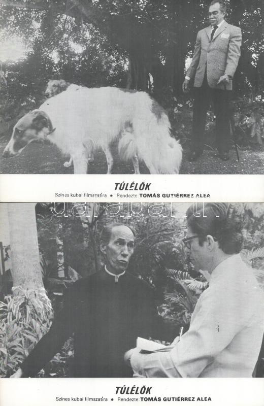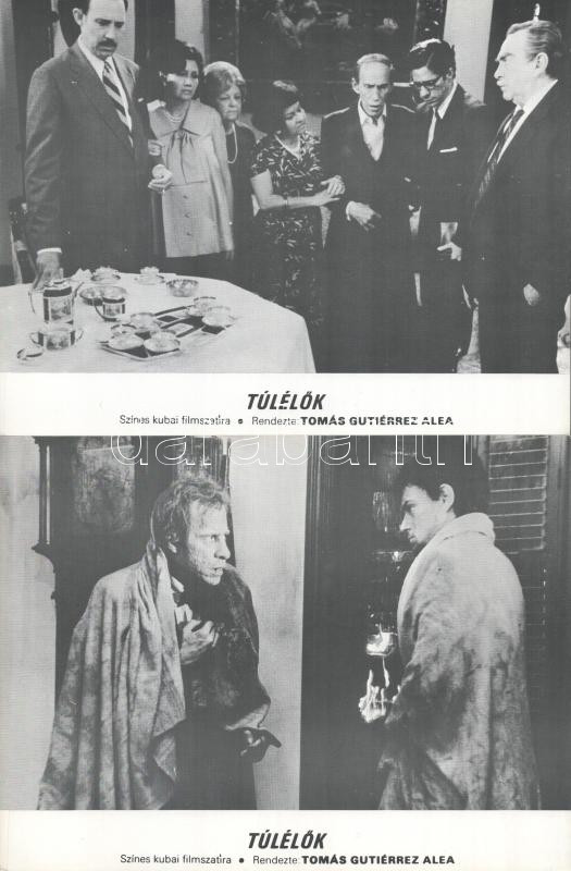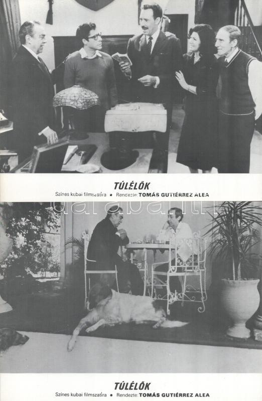 cca 1989 előtt készült ,,Túlélők" című kubai film jelenetei és szereplői, 6 db produkciós filmfotó (vitrinfotó, lobbyfotó) nyomdatechnikával sokszorosítva kartonpapírra, egyoldalas nyomással, a használatból eredő (esetleges) kisebb hibákkal, 18x24 cm