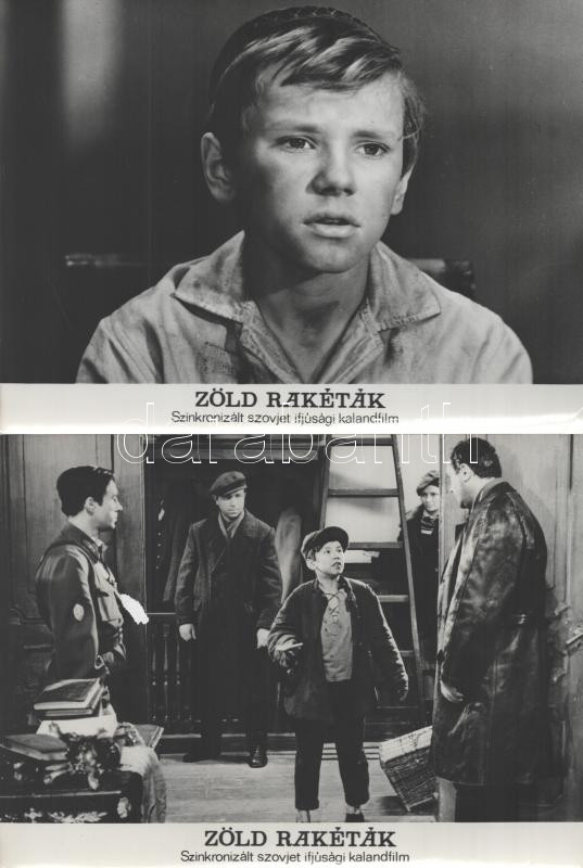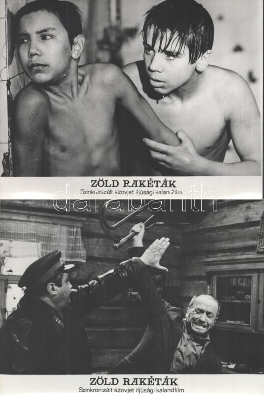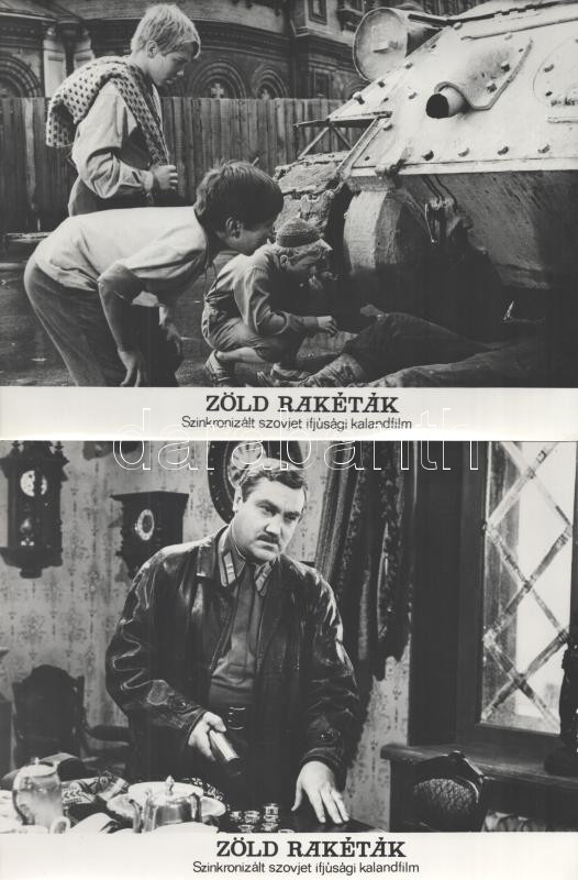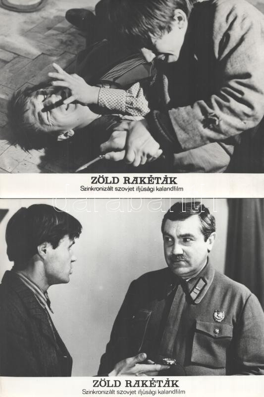 cca 1989 előtt készült ,,Zöld rakéták" című szovjet film jelenetei és szereplői, 17 db vintage produkciós filmfotó (vitrinfotó, lobbyfotó) ezüst zselatinos fotópapíron, a használatból eredő (esetleges) kisebb hibákkal, 18x24 cm