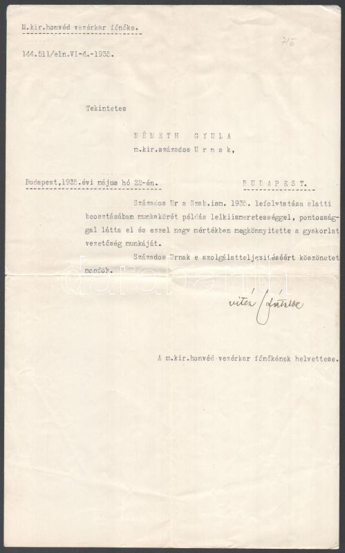 1935 Vitéz nagylaki Rátz Jenő (1882-1952) a vezérkari főnök helyettese... https://www.darabanth.com/de/470-Fernauktion/470.0/Kunst-Dokumente-andere-Sammelgebiete/Militaria~1000010/1935-Vitez-nagylaki-Ratz-Jeno-1882-1952-a-vezerkari-fonok-helyettese-kesobbi-honvedelmi~II3181396