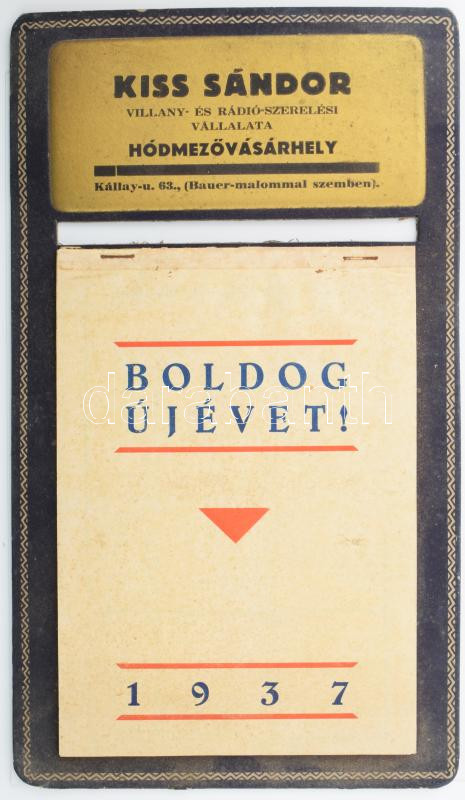 1937 Hódmezővásárhely, Kiss Sándor Villany- és Rádió-Szerelési Vállala... https://www.darabanth.com/de/470-Fernauktion/470.0/Kunst-Dokumente-andere-Sammelgebiete/Werbungen~1000003/1937-Hodmezovasarhely-Kiss-Sandor-Villany-es-Radio-Szerelesi-Vallalatanak-1937-es-asztali-naptara~II3184362